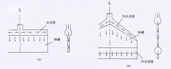 涂布工業(yè)上所使用的衣架型模具(Coat-Hanger Die),乃屬于狹縫式模具的一種,其內(nèi)部主要分為分流管(Manifold)與狹縫區(qū)(Slot Section)兩個部份;欲加工的流體由模具入口處流入,由于狹縫厚度極小,液體通過的阻力極大,所以高分子液體會先向截面積較大的分流管兩端流動,待在涂布的寬度方向上分配均勻后,再流入狹縫區(qū)且擠出形成均勻分布的薄膜。模具設(shè)計的最主要的目的在于如何設(shè)計分流管截面積的變化情形,使得不同流變性質(zhì)的涂液或不同的加工條件下,能生產(chǎn)出在寬度方向上厚度均勻的涂布液膜。