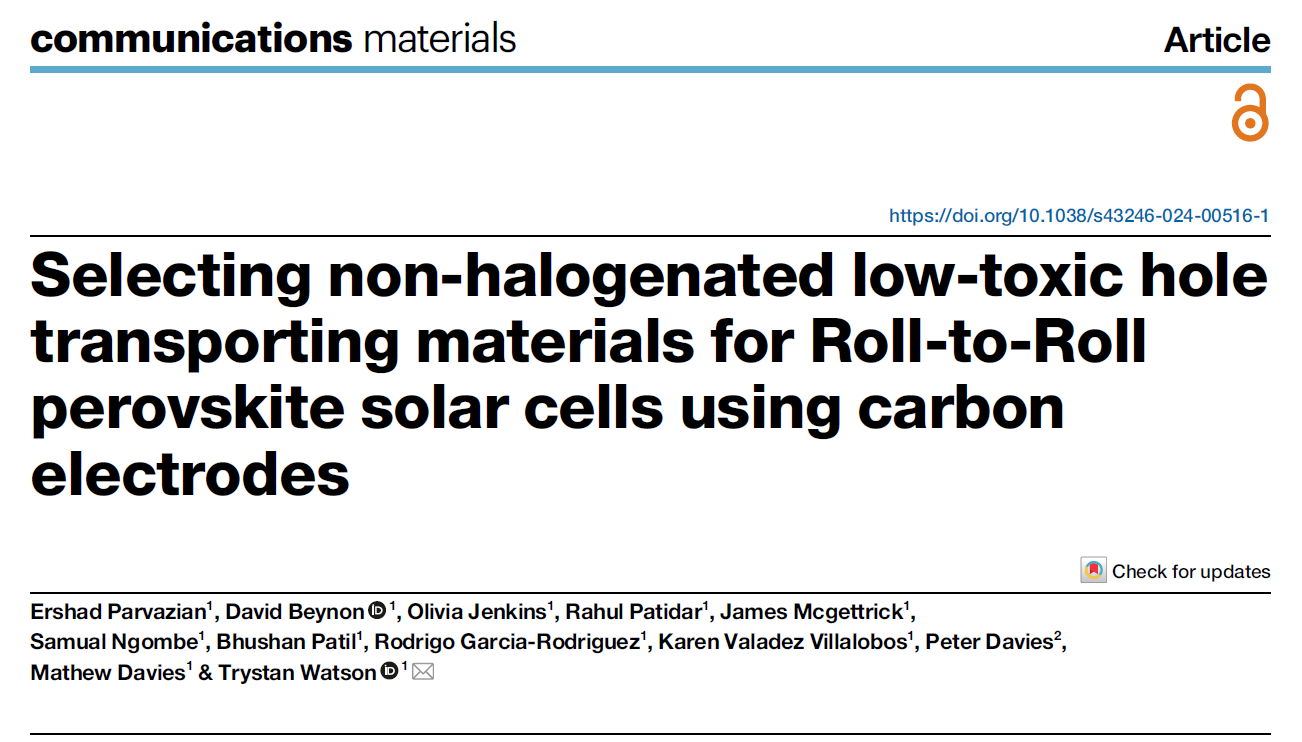 中國涂布技術研究全文翻譯國際知名期刊《communications materials》論文——《Selecting non-halogenated low-toxic hole transporting materials for Roll-to-Roll perovskite solar cells using carbon electrodes》(譯名:卷對卷涂布技術優(yōu)化鈣鈦礦太陽能電池性能的最新研究成果)。文章對四種廣泛使用的HTL材料:spiro-MeOTAD、PEDOT、PTAA和P3HT進行了深入的比較分析,并評估了它們的可擴展性、對器件性能的影響,以及在不同濕度和溫度條件下的穩(wěn)定性。為通過R2R涂布技術實現(xiàn)大規(guī)模生產并優(yōu)化鈣鈦礦太陽能電池的性能提供了新的見解。