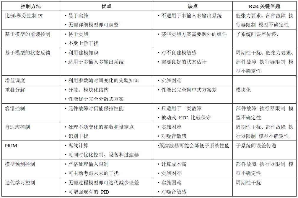 表2 R2R系統(tǒng)面臨主要挑戰(zhàn)的控制方法及其優(yōu)缺點(diǎn)