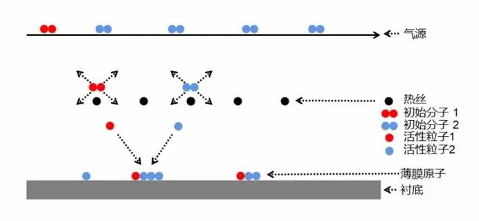 原理:通過高溫金屬絲(如鎢、鉭)熱解反應(yīng)氣體(如甲烷、硅烷),生成活性基團(tuán),沉積于基材表面形成薄膜。