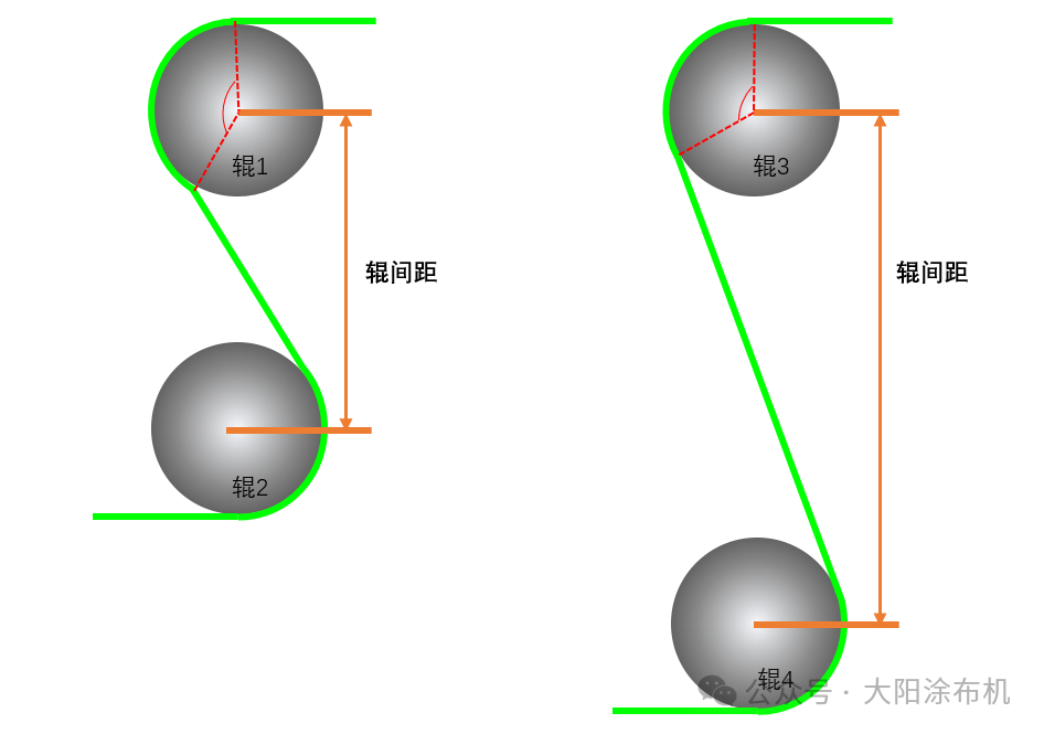 輥間距是指相鄰兩輥中心之間的水平距離。輥間距越大,基材與輥筒的接觸面積越小,包角也越小。