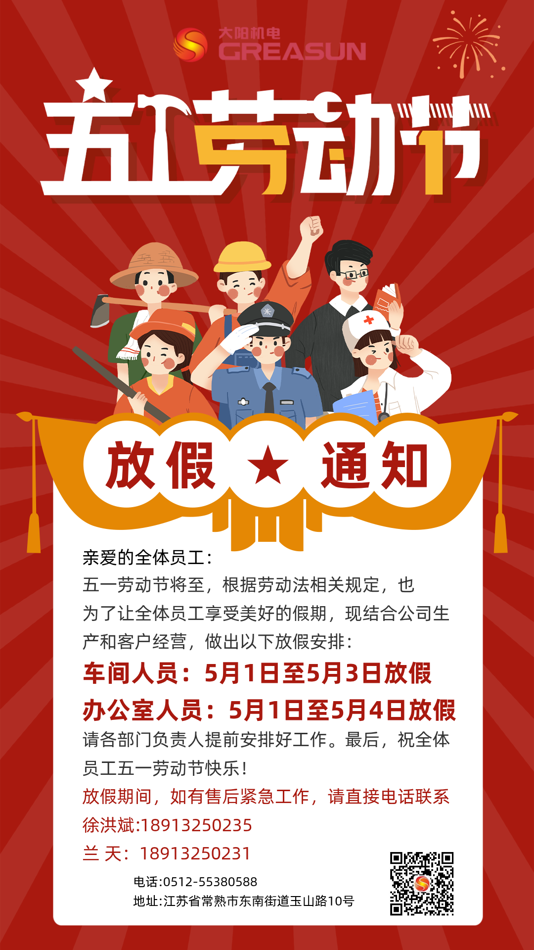 【放假通知】2025年大陽機電五一勞動節(jié)放假通知